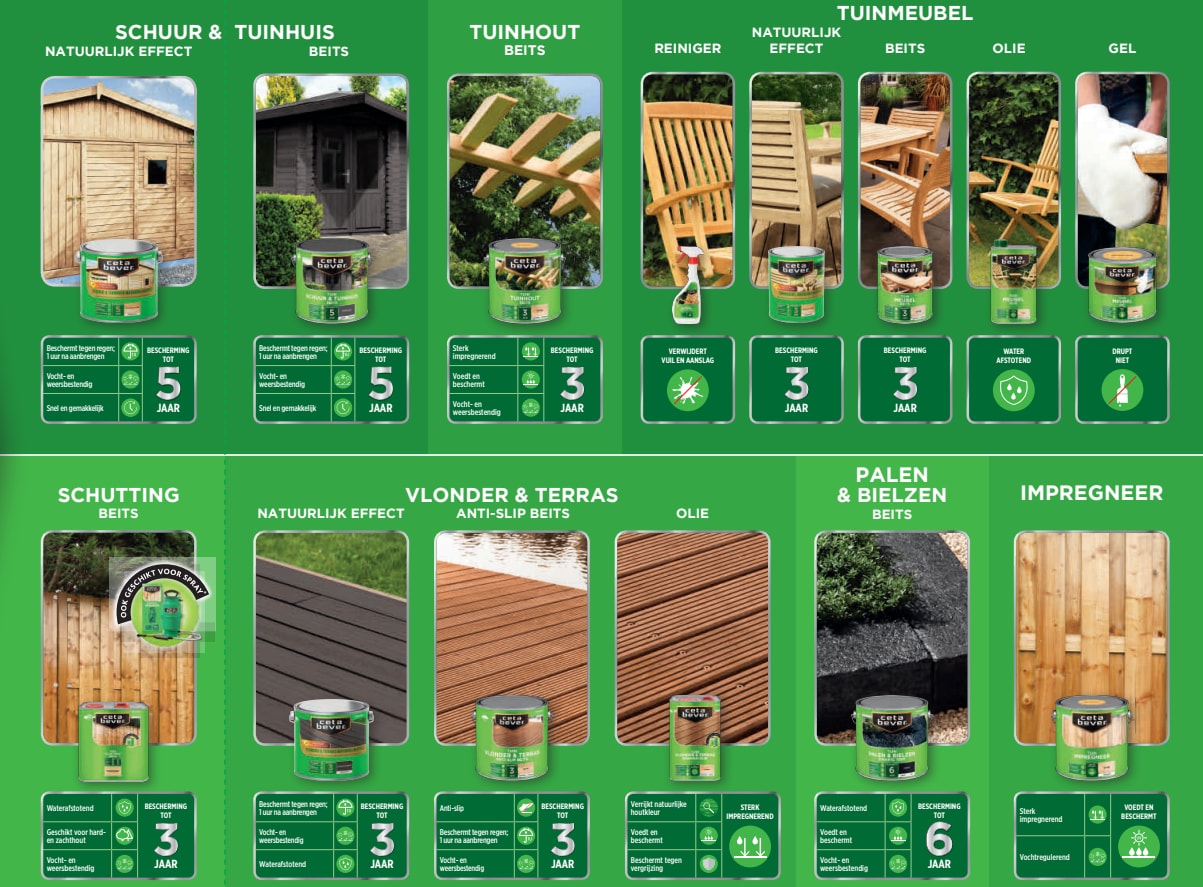 CetaBever biedt een compleet assortiment voor het beschermen, opfrissen en mooi houden van al jouw houtwerk in de tuin. Van schuren, tuinhuizen, tuinmeubels, schuttingen, vlonders, terrassen, palen en bielzen tot tuinhout zoals pergola’s. Daarbij zijn alle producten uit het assortiment CetaBever: